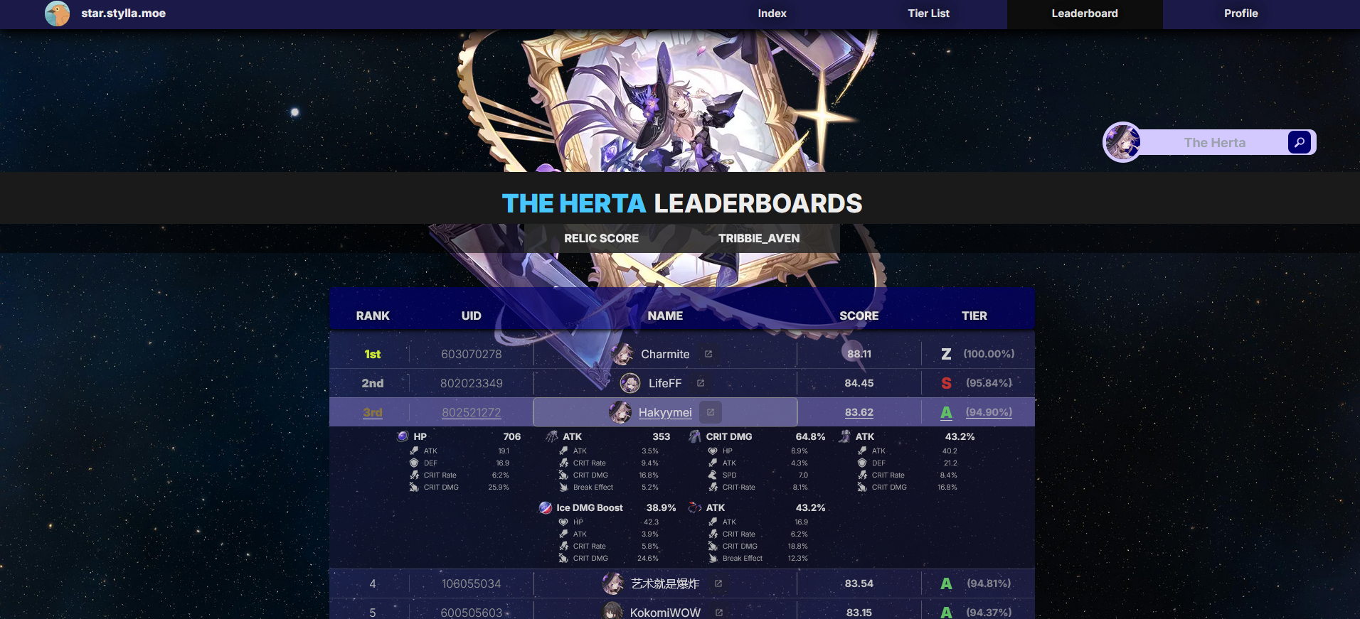 Fullstack web application for Honkai: Star Rail. Displays player profiles, ranks player builds, and indexes game data for easy access.